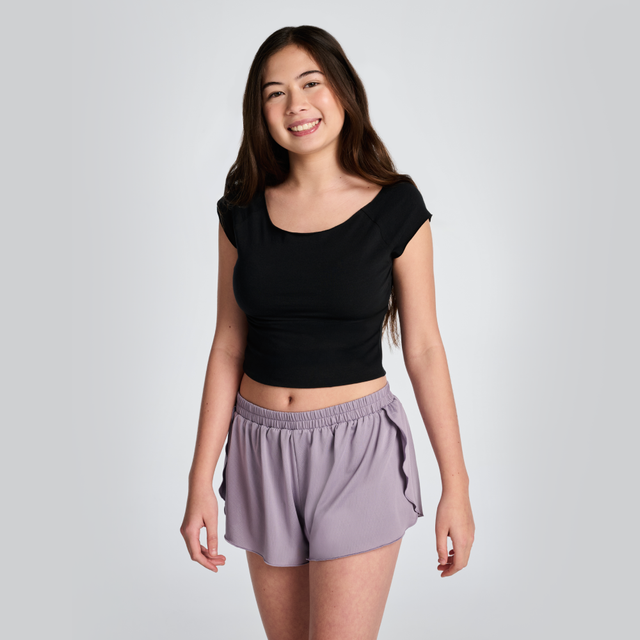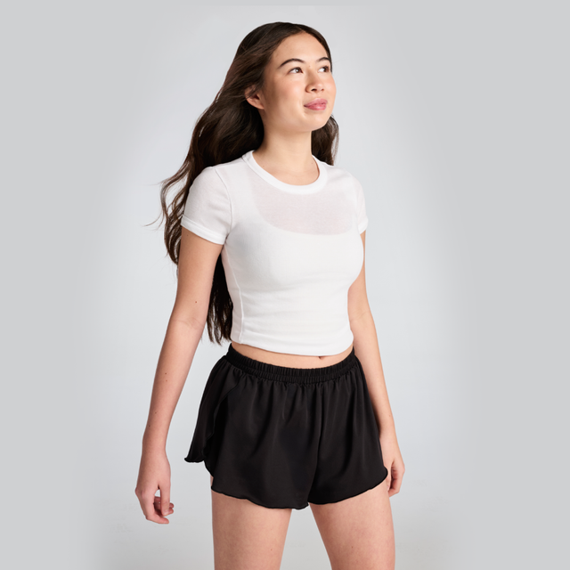 Period underwear on the inside, fluttery athletic inspired shorts on the outside. Shorts made with coolcore™ breathable mesh body fabric. Features an extended absorbent gusset* for overnight protection.